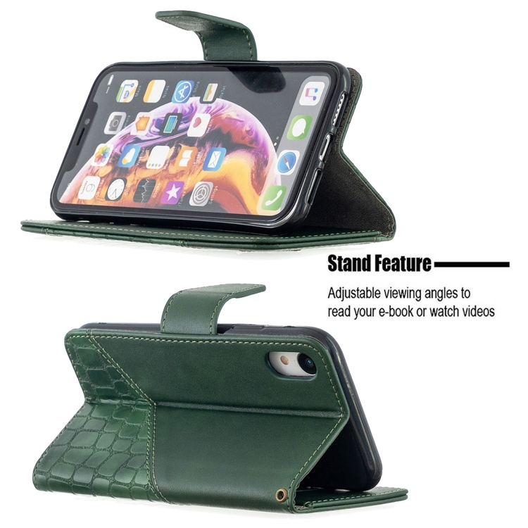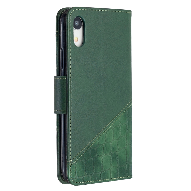 Funda de Cuero PU para iPhone Xr Textura Cocodrilo con Tapa Horizontal Billetera Soporte y Ranuras para Tarjetas (Verde)
