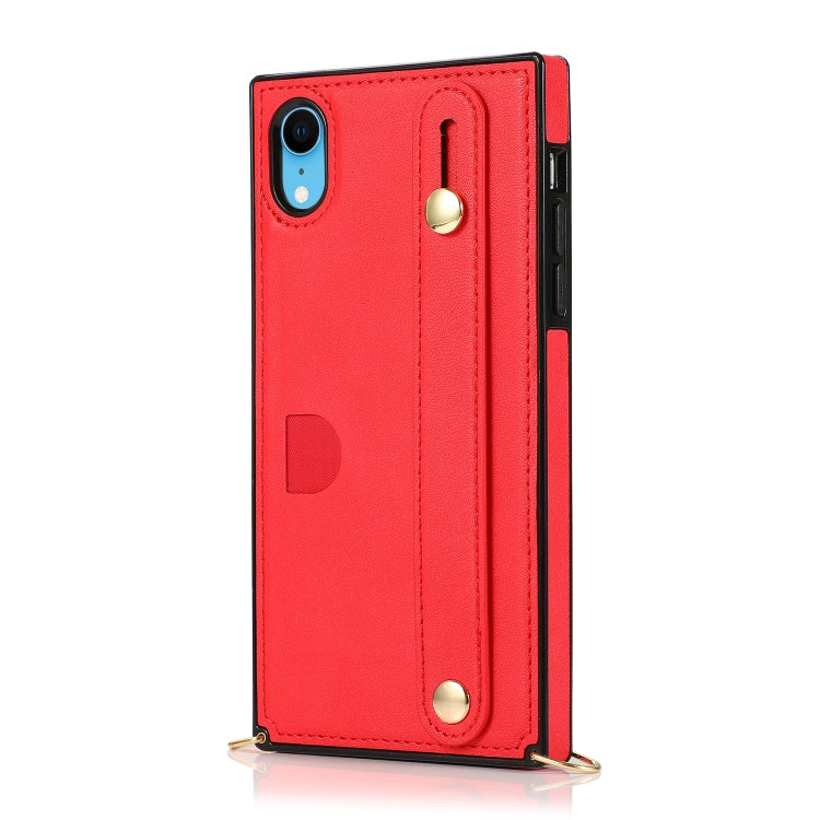 Correa para Muñeca + Estuche TPU para iPhone Xr a Prueba de Golpes con Soporte y Ranura para Tarjeta (Rojo)