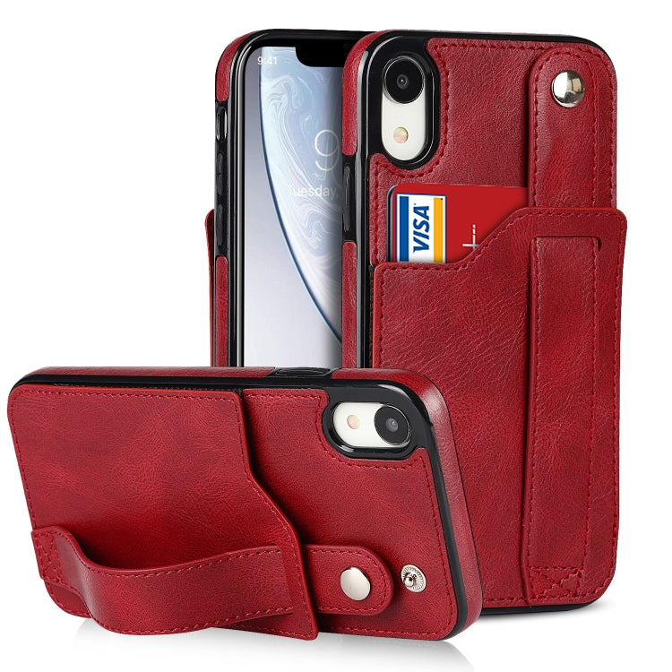 Funda para iPhone Xr Crazy Horse Texture Cuero TPU + PU a Prueba de Golpes con Ranura para Tarjeta y Correa para la Muñeca (Rojo)
