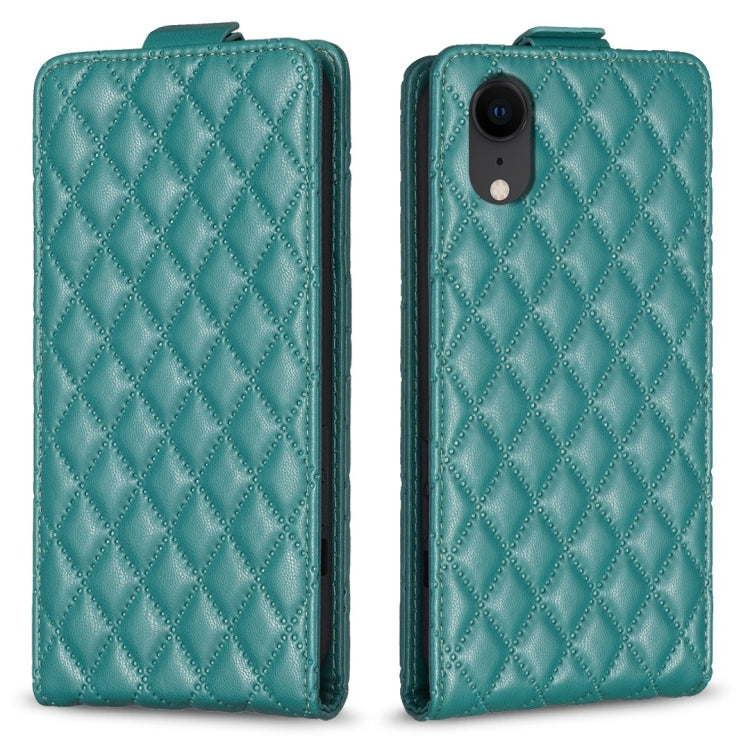Funda de Cuero para iPhone Xr Diamond Lattice con Tapa Vertical (Verde)