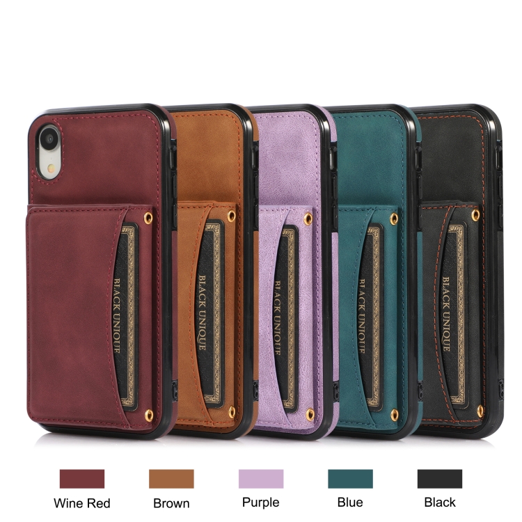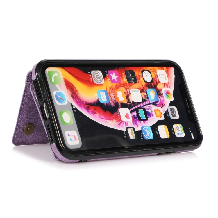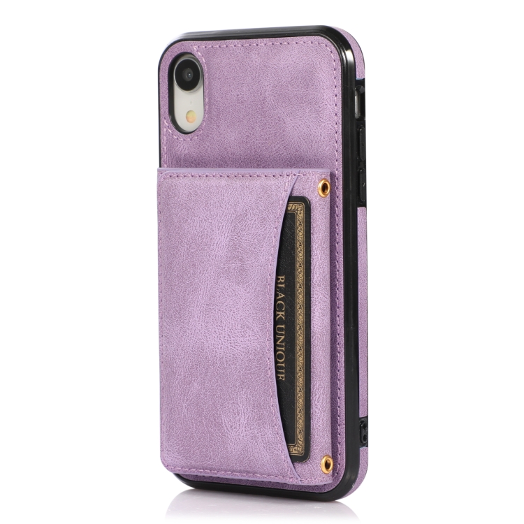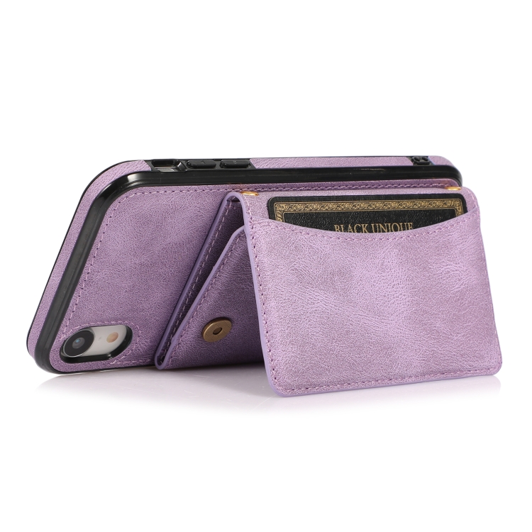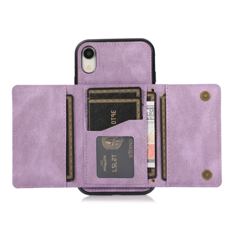 Estuche de Cuero Triple para iPhone Xr con Ranura para Tarjeta y Billetera y Soporte (Púrpura)