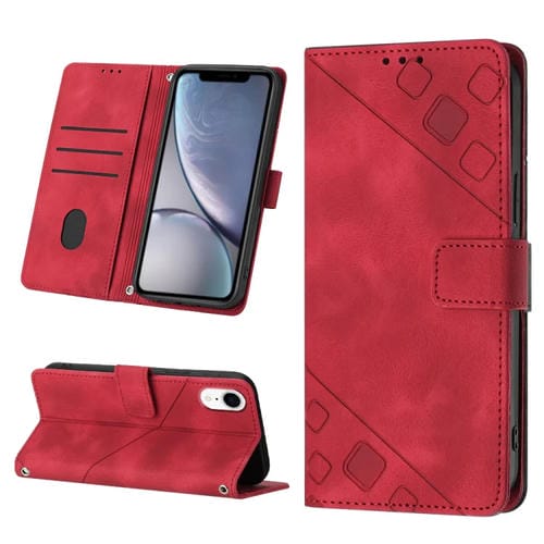 Estuche para Teléfono iPhone Xr Cuero En Relieve con Tacto de Piel (Rojo)