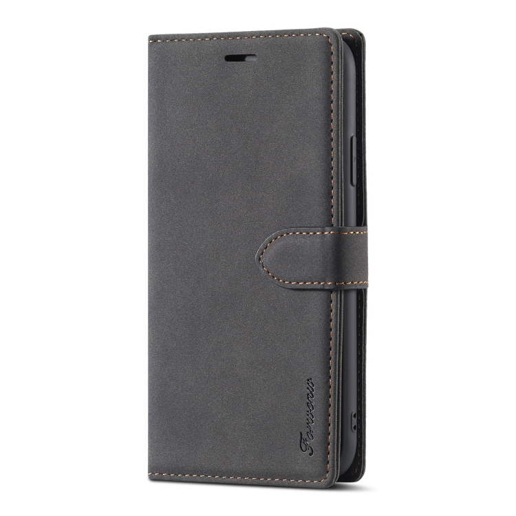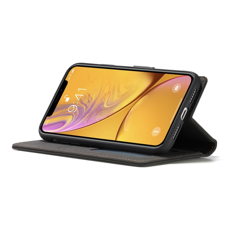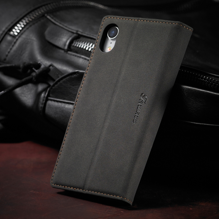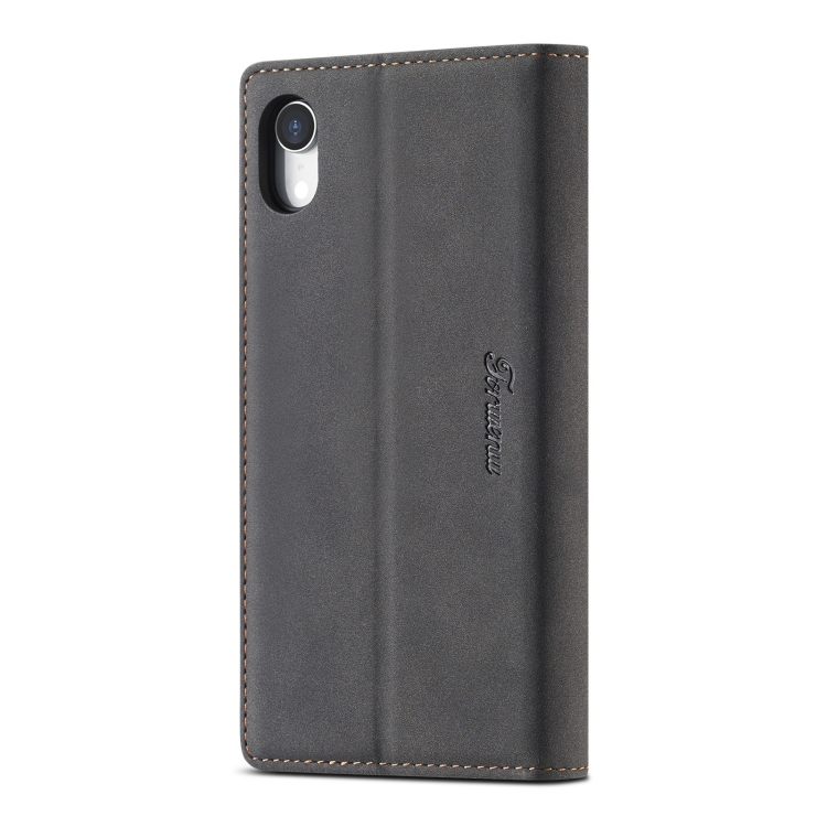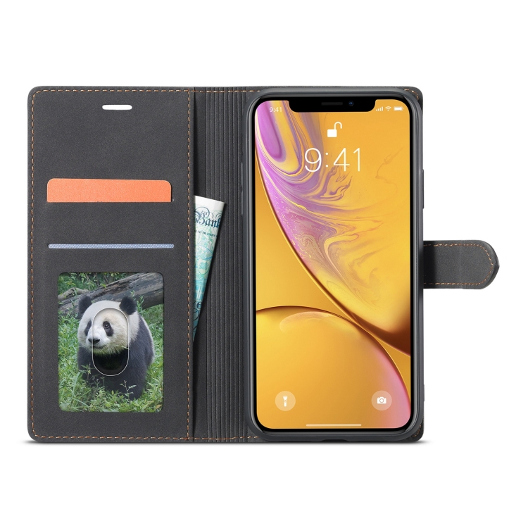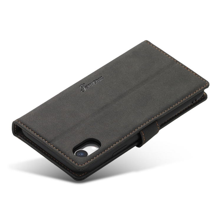 Estuche de Cuero FoRWenw F1 para iPhone Xr con Tapa Horizontal Magnetismo Fuerte Soporte Ranuras para Tarjetas Billetera Marco de Fotos (Negro)
