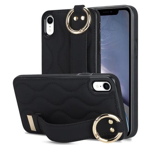 Funda para Teléfono iPhone Xr Antideslizante de PU con Anillo y Muñequera (Negro)
