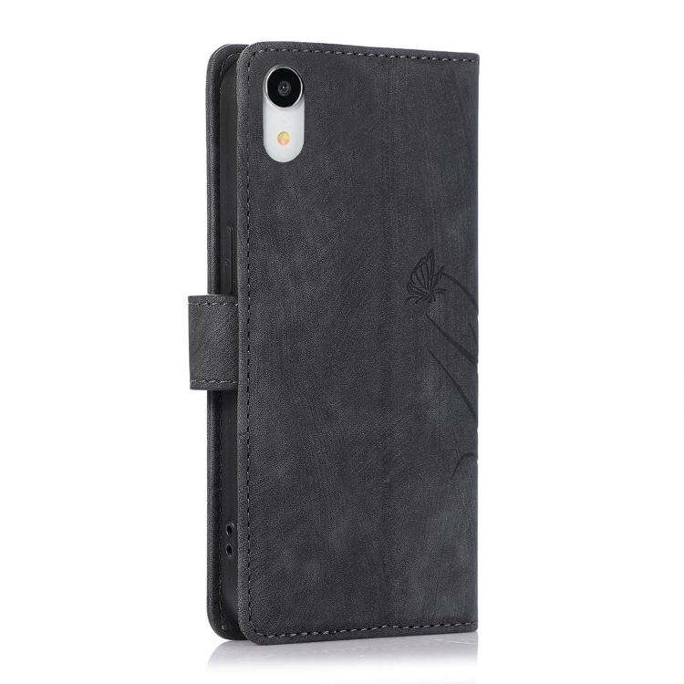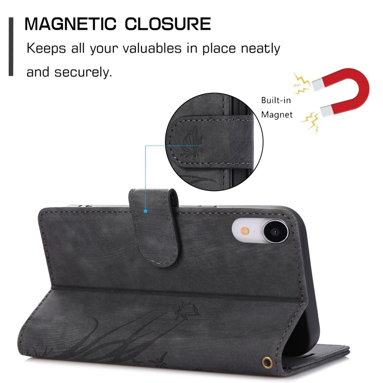 Funda para Teléfono iPhone Xr Cuero Relieve Mariposa Orquídea (Negro)
