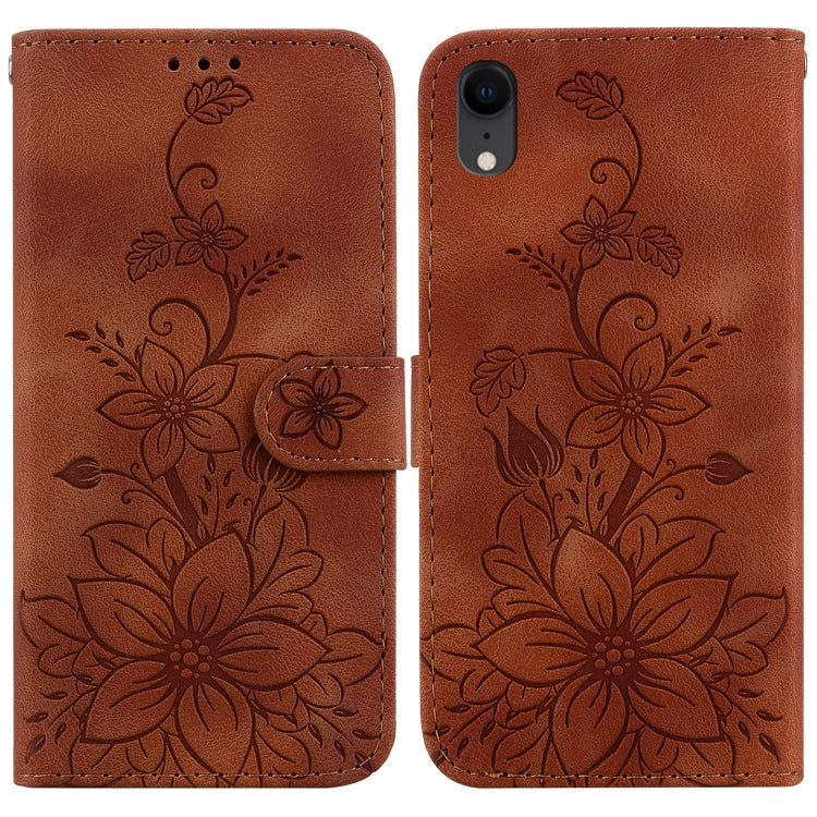 Estuche para Teléfono iPhone Xr Lily Cuero en Relieve (Marrón)