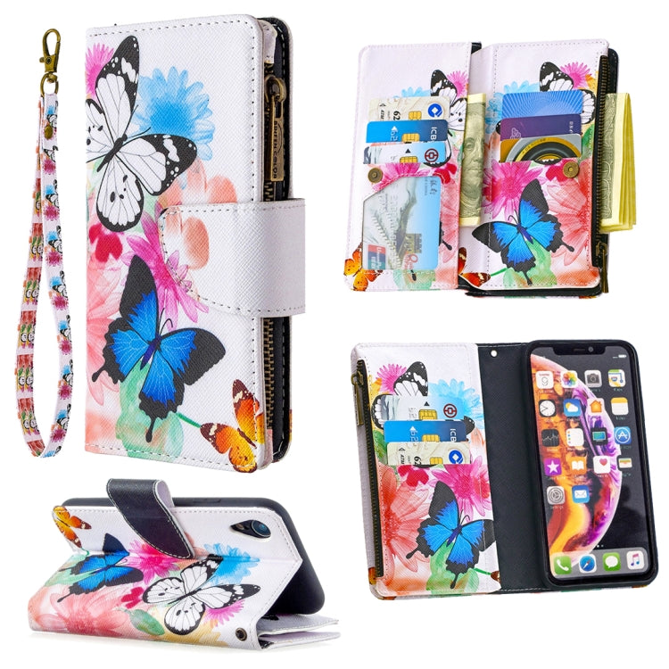 Funda de Cuero iPhone Xr con Tapa Horizontal Soporte y Ranuras para Tarjetas (Dos Mariposas)