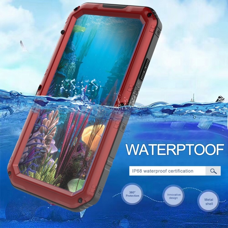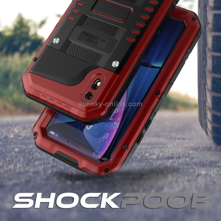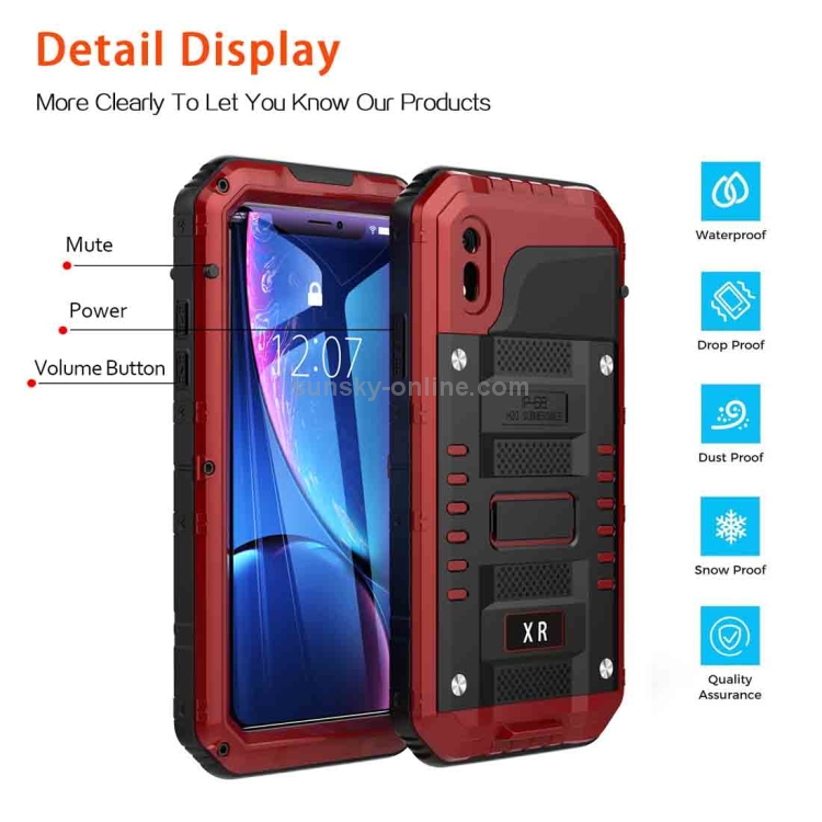 Funda para iPhone Xr Aleación de Zinc y Silicona Resistente al Agua Polvo Golpes (Rojo)