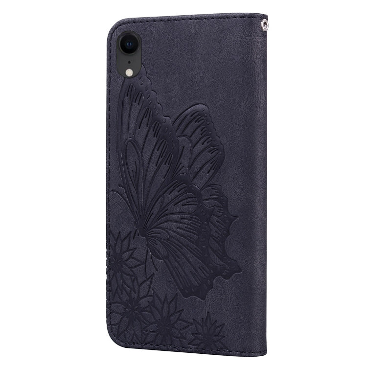 For iPhone XR Retro Skin Feel Butterflies Embossing Horizontal Flip Leather Case with Holder & Card Slots & Wallet(Black)