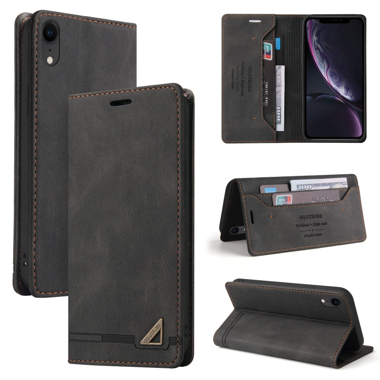 Funda de Cuero Skin Feel para iPhone Xr con Tapa Horizontal Cepillo Antirrobo Soporte Ranuras para Tarjetas y Billetera (Negro)