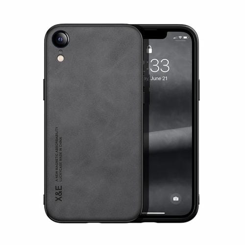 Funda para iPhone Xr Skin Feel Magnética de Cuero para Teléfono (Gris Oscuro)