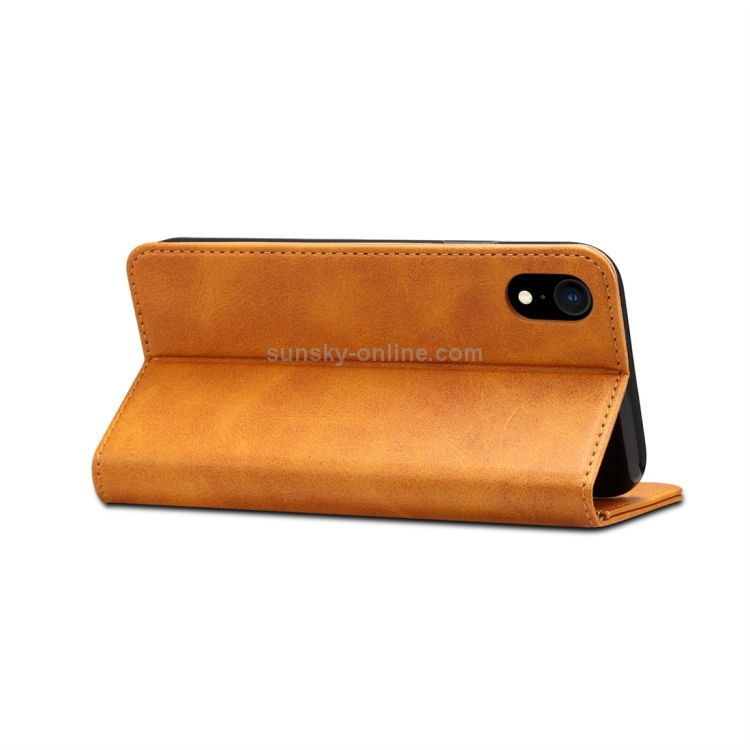 Funda para iPhone Xr Suteni Calf Texture Cuero con Tapa Horizontal Soporte Ranuras Tarjetas Billetera (Marrón)