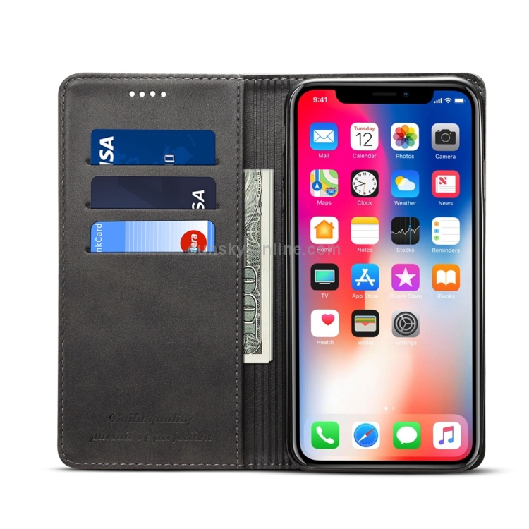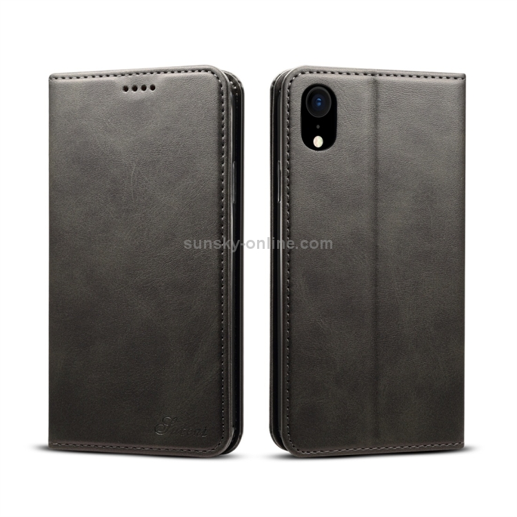 Funda para iPhone Xr Suteni Calf Texture Cuero Tapa Horizontal Soporte Ranuras Tarjetas Billetera (Negro)