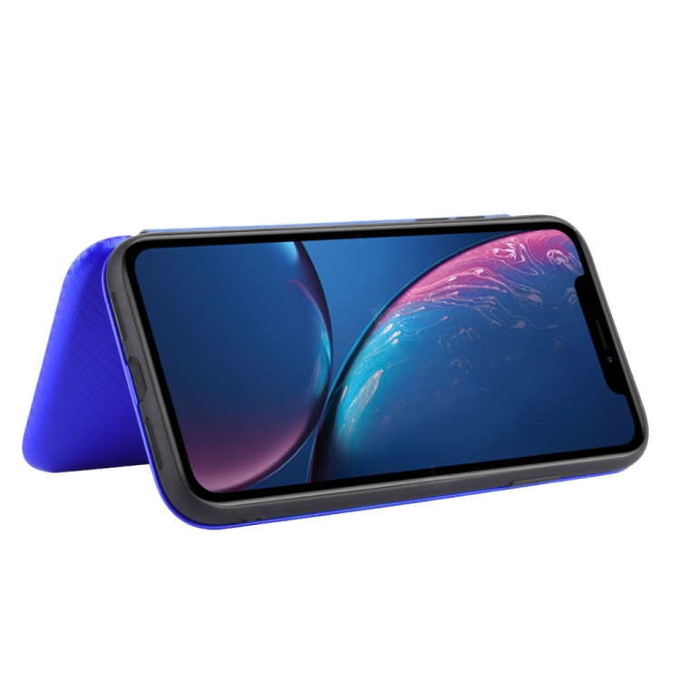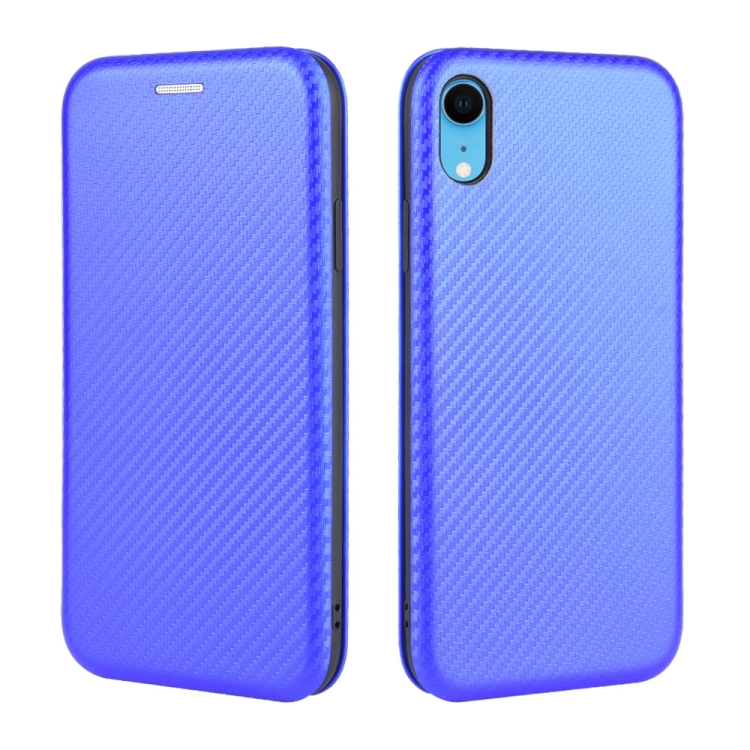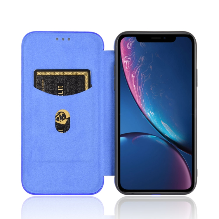 Funda para iPhone Xr Textura Fibra de Carbono Flip Horizontal TPU + PC + Cuero Pu con Ranura para Tarjeta (Azul)
