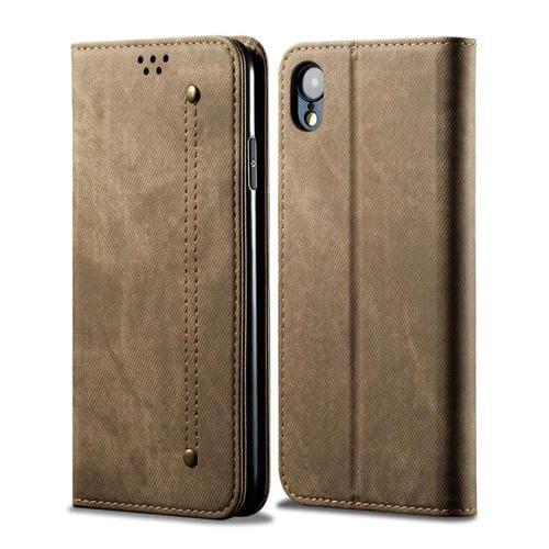 Funda para iPhone Xr Cuero con Tapa Horizontal Soporte Ranuras Tarjetas Billetera (Caqui)