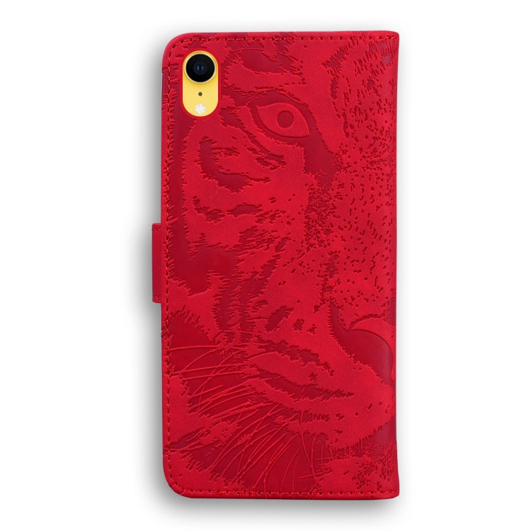 Funda de Cuero para iPhone Xr Tiger Embossing Pattern con Tapa Horizontal, Soporte y Ranuras para Tarjetas (Rojo)