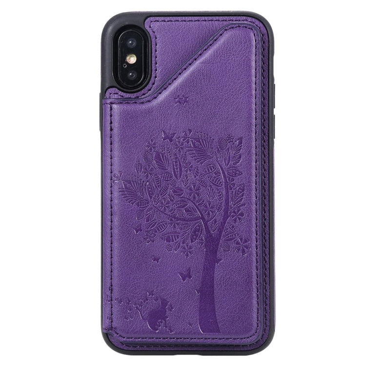 Estuche Protector para iPhone Xs Cat Tree Embossing Pattern a Prueba de Golpes con Ranuras para Tarjetas y Marco de Fotos (Púrpura)