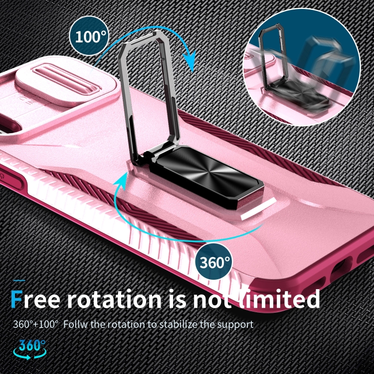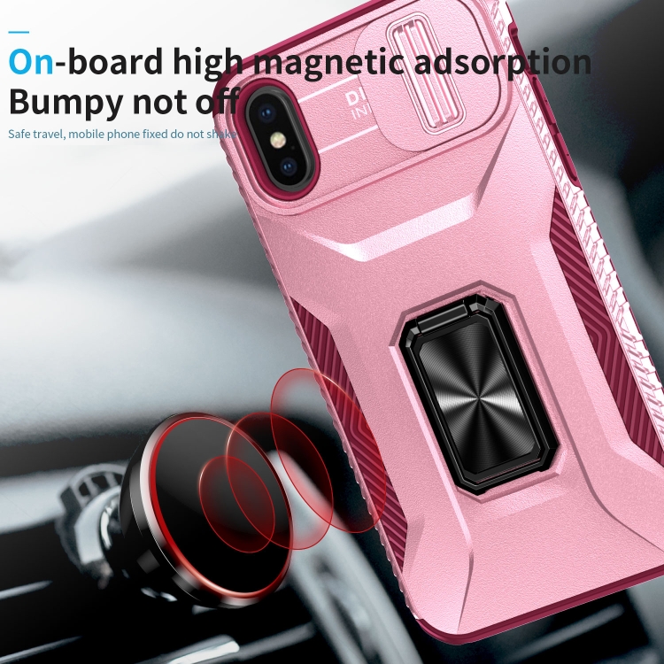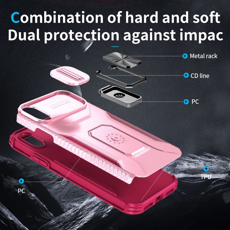 Estuche para Teléfono iPhone Xs con Soporte Deslizante para Levas (Rosa + Rojo Rosa)