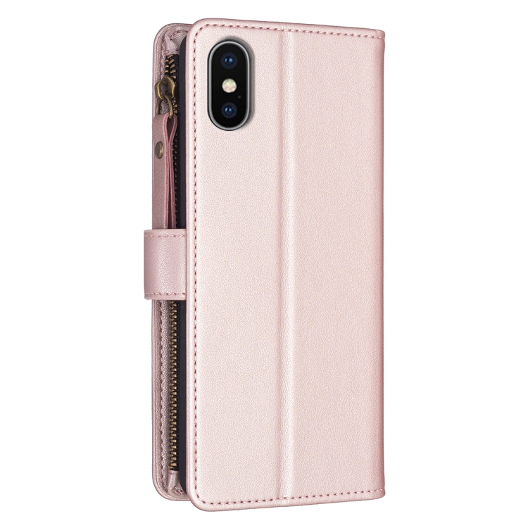 Funda para iPhone Xs Max Cartera de Cuero con 9 Ranuras para Tarjetas y Cremallera (Oro Rosa)