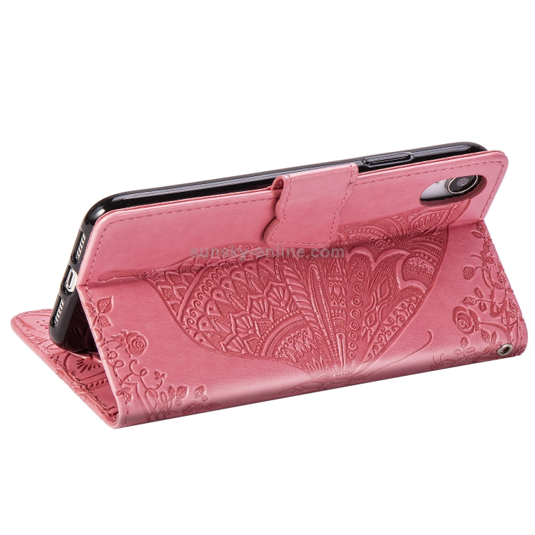 Estuche de Cuero para iPhone Xs Max Butterfly Love Flowers con Tapa Horizontal En Relieve Soporte Ranuras y Cordón (Rosa)