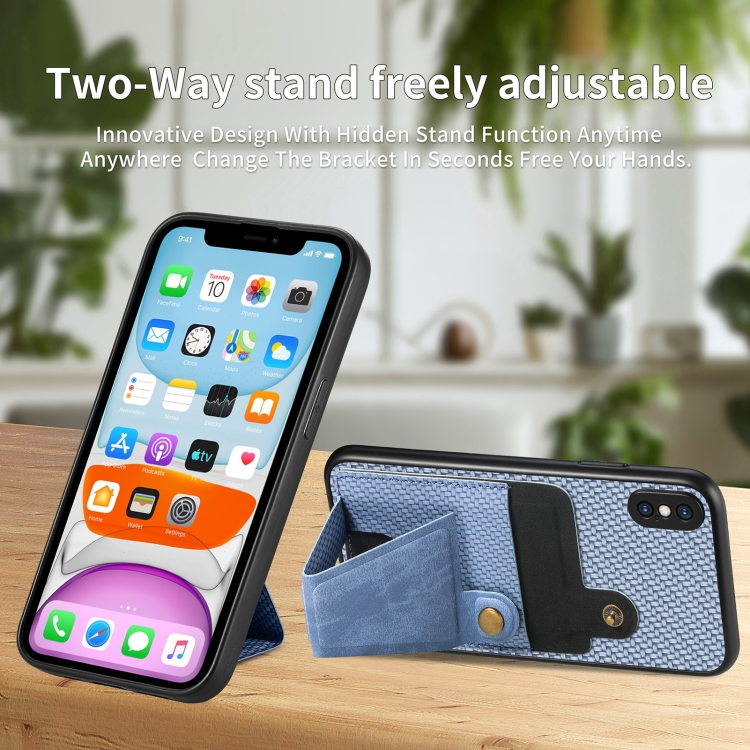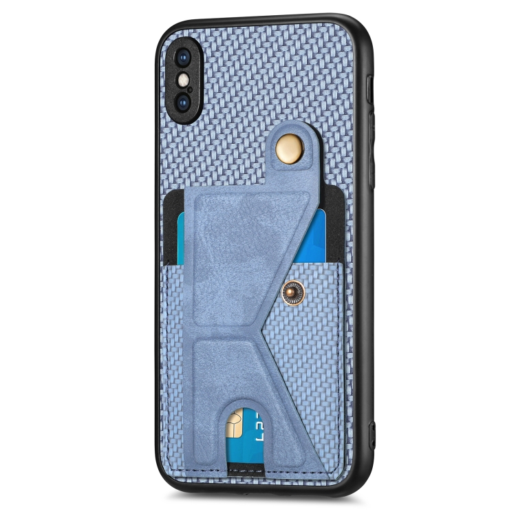 Funda para Teléfono iPhone Xs Max Carbon Fiber Wallet Flip Card con Soporte en Forma de K (Azul)