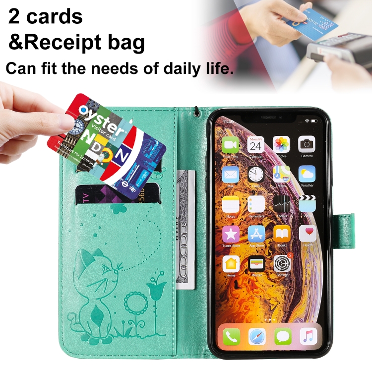 Funda de Cuero Cat Bee para iPhone Xs Max con Tapa Horizontal, Soporte y Ranuras para Tarjetas (Verde)