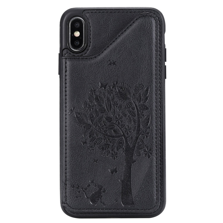 Funda Protectora para iPhone Xs Max Cat Tree Relieve Patrón a Prueba de Golpes con Ranuras para Tarjetas (Negro)