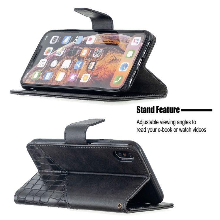 Funda de Cuero de Pu para iPhone Xs Max con Tapa Horizontal, Billetera, Soporte y Ranuras para Tarjetas (Negro)
