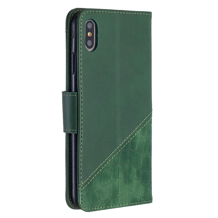 Funda para iPhone Xs Max Cuero PU Textura Cocodrilo Tapa Horizontal Billetera Soporte Ranuras Tarjetas (Verde)