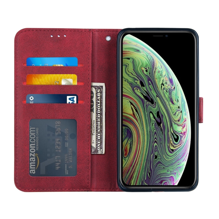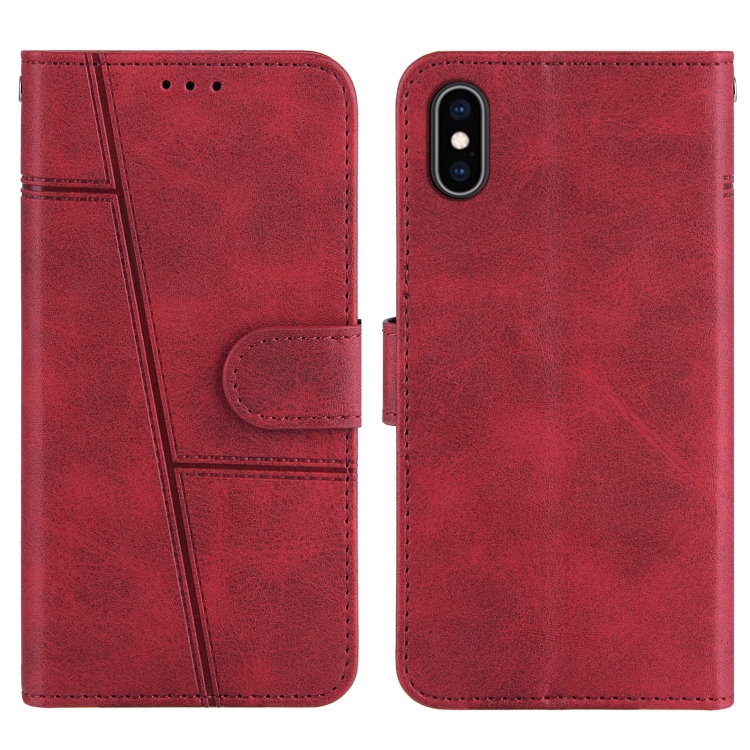 Funda de Cuero para iPhone Xs Max Costura Textura de Pantorrilla con Tapa Horizontal Soporte Ranuras Tarjetas Billetera y Cordón (Rojo)