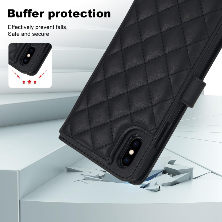 Estuche para Teléfono iPhone Xs Max Crossbody de Cuero Rómbico Multifunción (Negro)