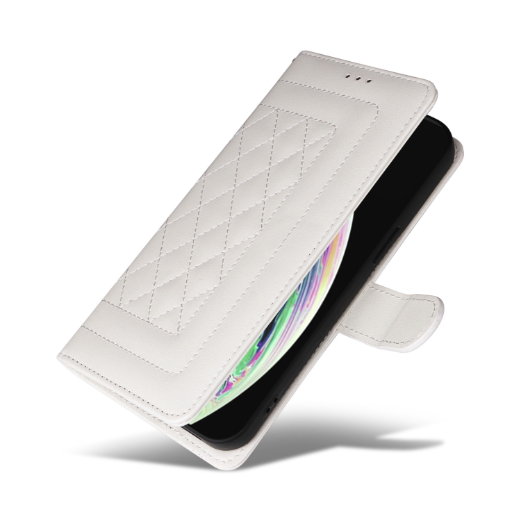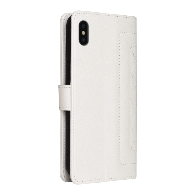 Funda para iPhone Xs Max Diamond Lattice de Cuero con Tapa (Blanco)
