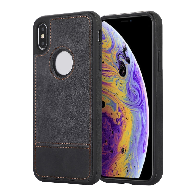 Funda para iPhone Xs Max Empalme Costura Caja de Teléfono de PU con Recorte (Negro)