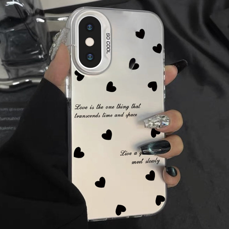 Funda híbrida para iPhone Xs Max TPU para PC con Pintura Plateada (Corazones de Amor Blancos)
