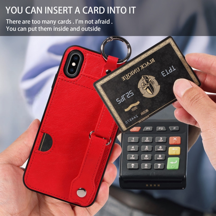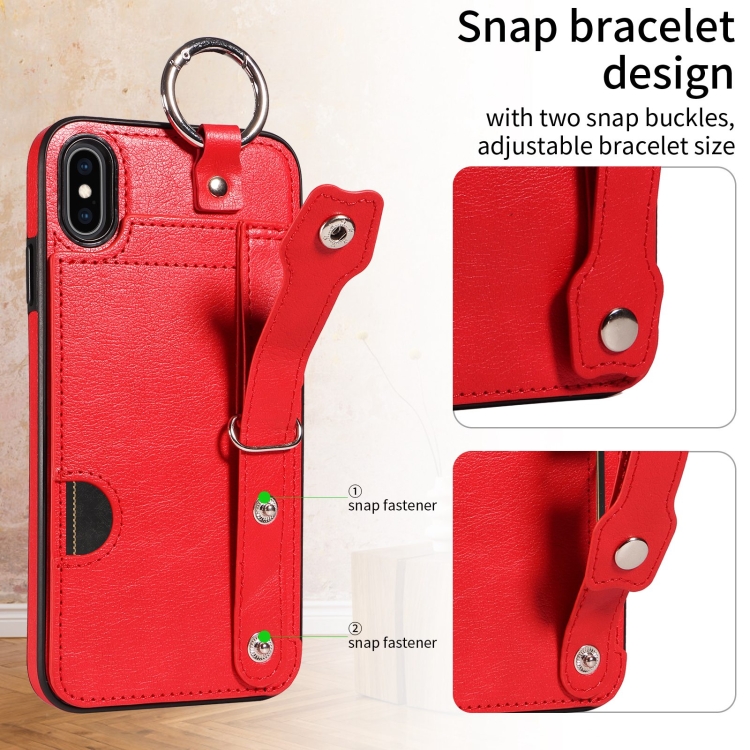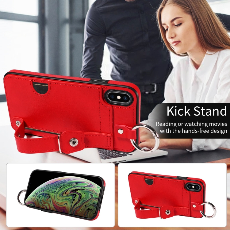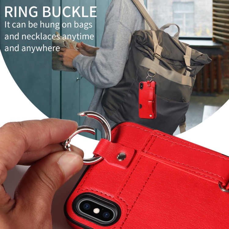 Funda para Teléfono iPhone Xs Max con Anillo y Ranura para Tarjeta Textura de Pantorrilla (Rojo)
