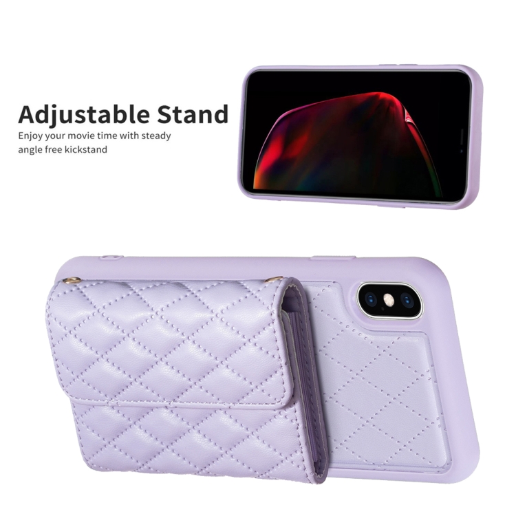 Funda Horizontal Wallet para iPhone Xs Max Rhombic Cuero (Púrpura)