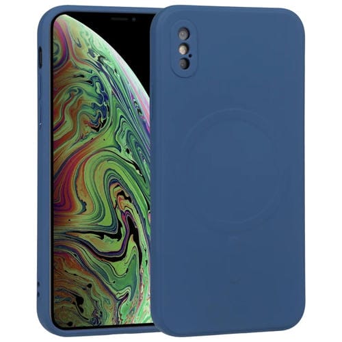 Funda para iPhone Xs Max Liquid Silicone Cobertura Completa a Prueba de Golpes Magsafe (Azul Oscuro)