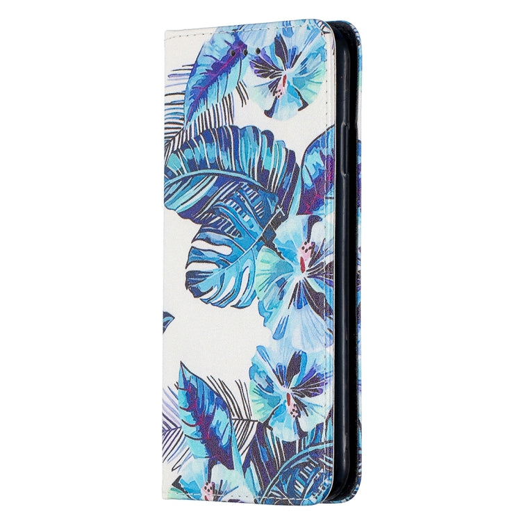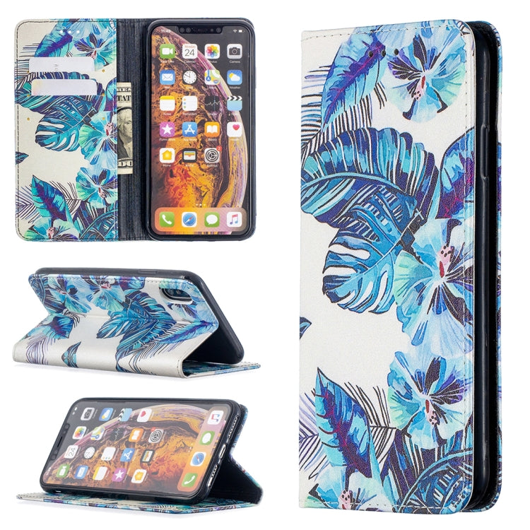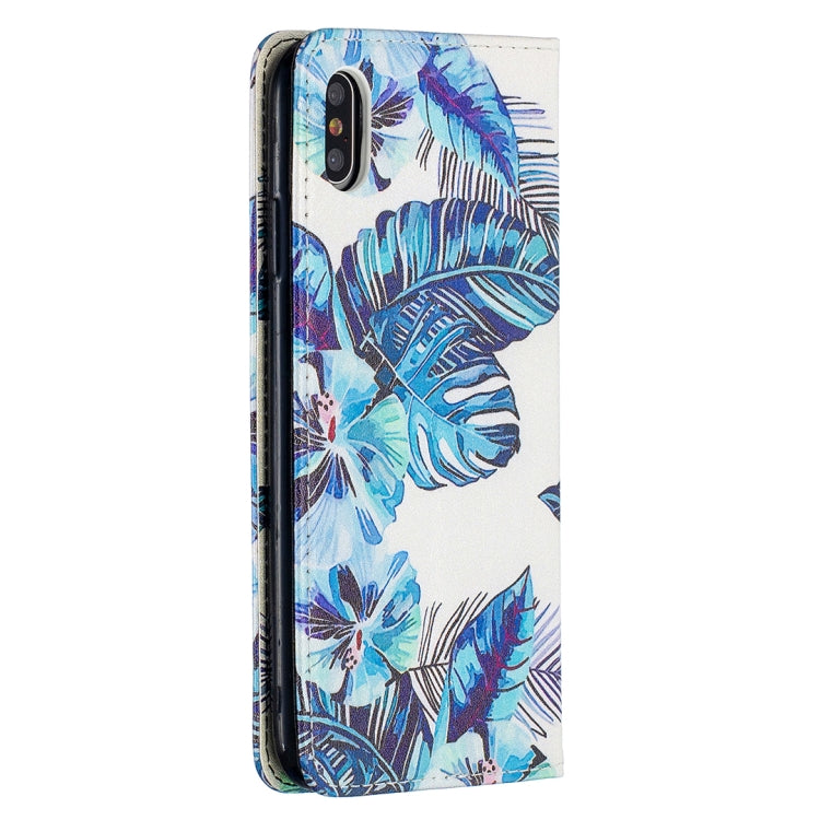 Estuche de Cuero de PU para iPhone Xs Max con Tapa Horizontal Magnética, Soporte y Ranuras para Tarjetas (Hojas Azules)
