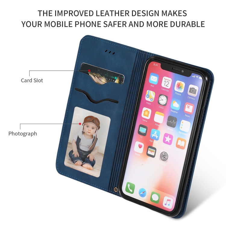 Funda para iPhone Xs Max Retro Skin Feel Business de Cuero con Tapa Horizontal Magnética (Azul Marino)