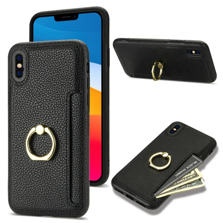 Funda Trasera para iPhone Xs Max Ring Card Litchi Cuero (Negro)