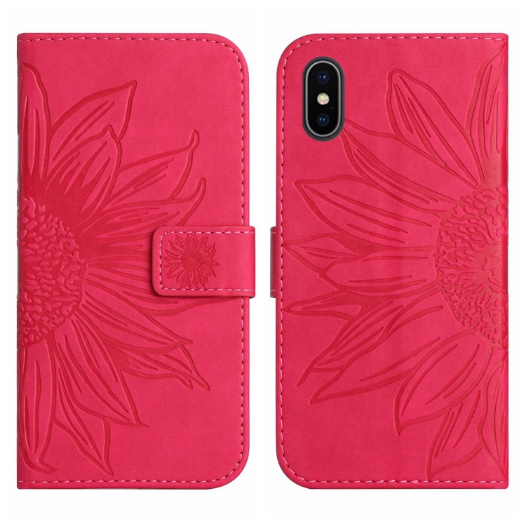 Funda Flip de Cuero para iPhone Xs Max Skin Feel Sun Flower Pattern con Cordón (Rose Red)