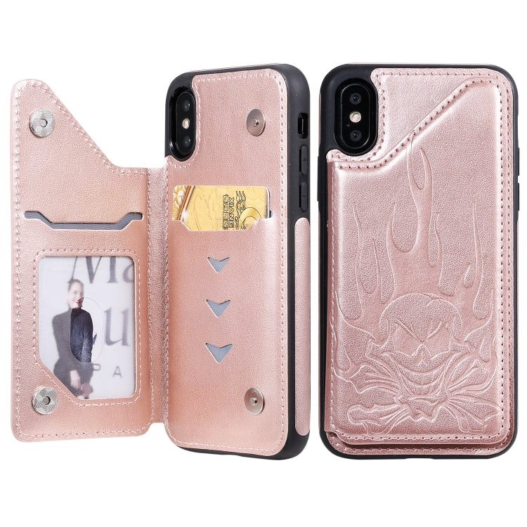 Estuche protector para iPhone Xs Max Skull Head con soporte y ranuras para tarjetas y billetera (Oro Rosa)