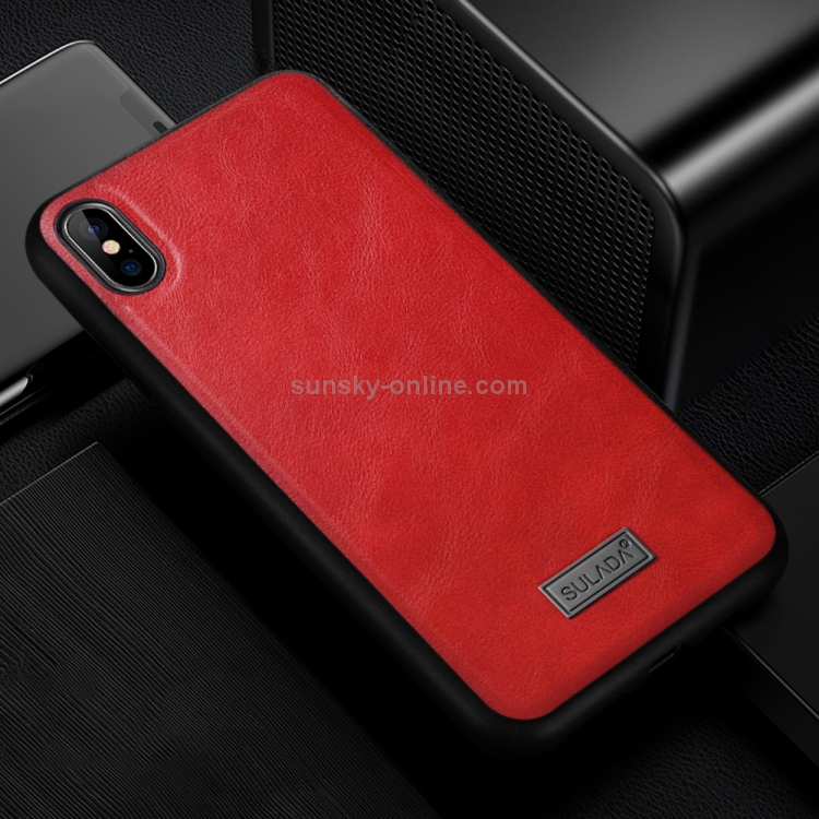 Funda para iPhone Xs Max Sulada TPU a Prueba de Golpes y Cuero Hecha a Mano (Rojo)