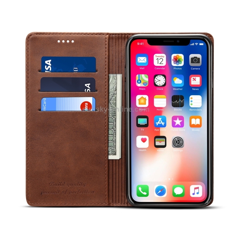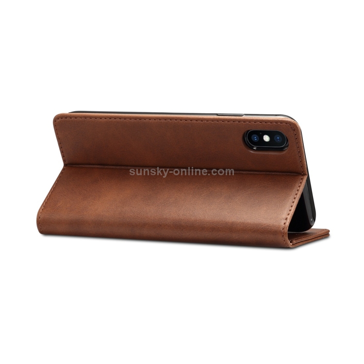Funda para iPhone Xs Max Suteni Calf Texture Cuero con Tapa Horizontal Soporte y Ranuras para Tarjetas Billetera (Café)