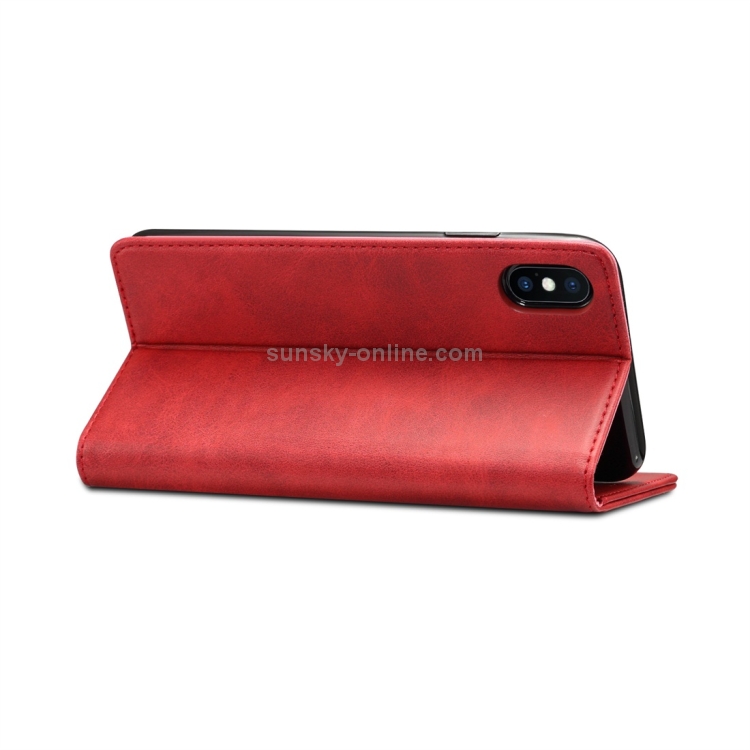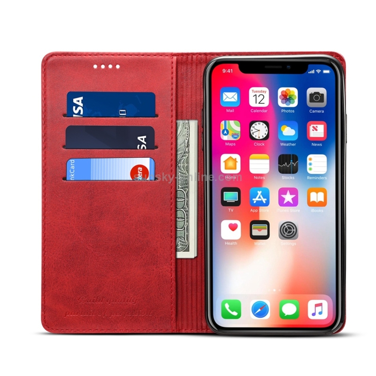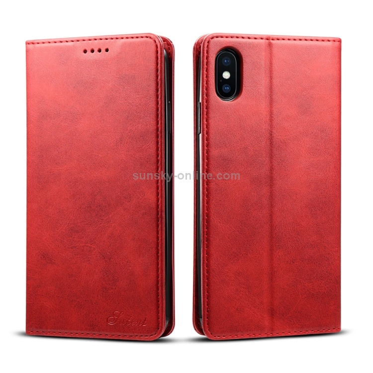 Funda para iPhone Xs Max Suteni Calf Texture Cuero con Tapa Horizontal Soporte Ranuras para Tarjetas y Billetera (Rojo)