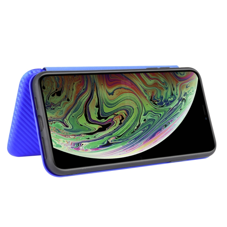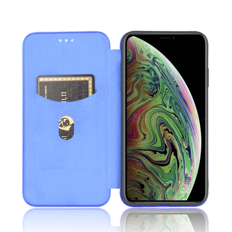Funda para iPhone Xs Max Textura de Fibra de Carbono Flip Horizontal TPU PC Cuero PU Ranura para Tarjeta (Azul)