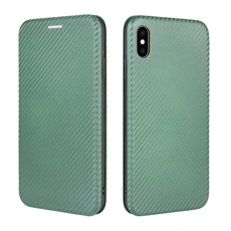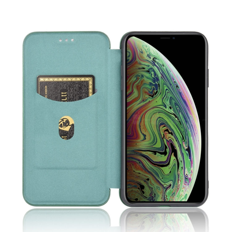 Funda para iPhone Xs Max Textura de Fibra de Carbono Flip Horizontal TPU + PC con Cuero PU y Ranura para Tarjeta (Verde)