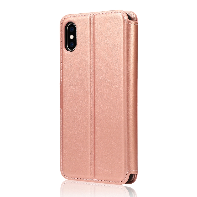 Funda de Cuero para iPhone Xs Max Textura de Pantorrilla con Hebilla Magnética Tapa Horizontal Soporte Ranuras para Tarjetas Monedero Marco de Fotos (Oro Rosa)