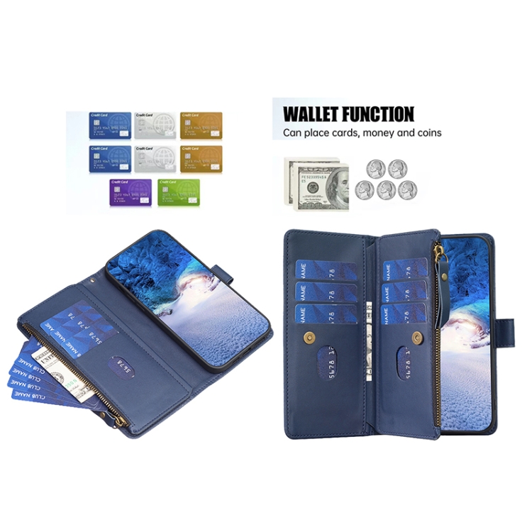 4. Cartera con cremallera: la ranura para múltiples tarjetas Super puede contener 9 tarjetas;La apertura y cierre del compartimento de efectivo con cremallera puede proteger su efectivo.¡Cómoda y práctica para salir basta con una bolsa para el móvil!