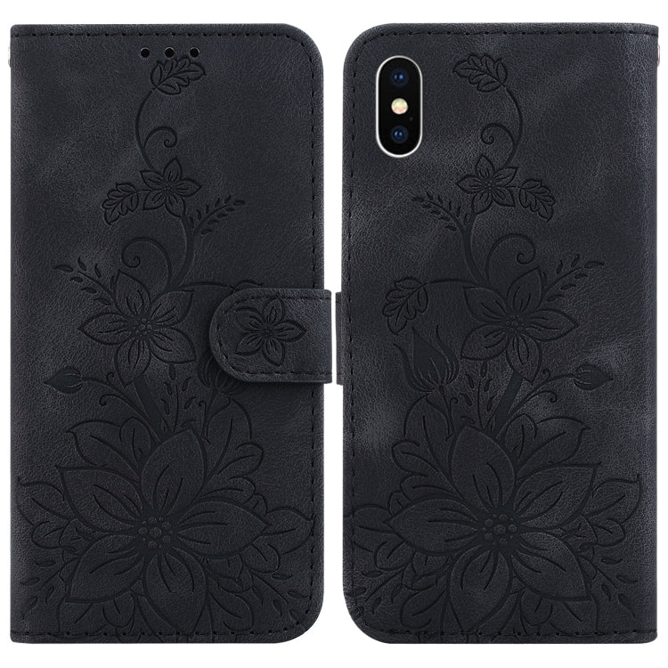 Estuche para teléfono iPhone Xs X Cuero en relieve Lily (Negro)